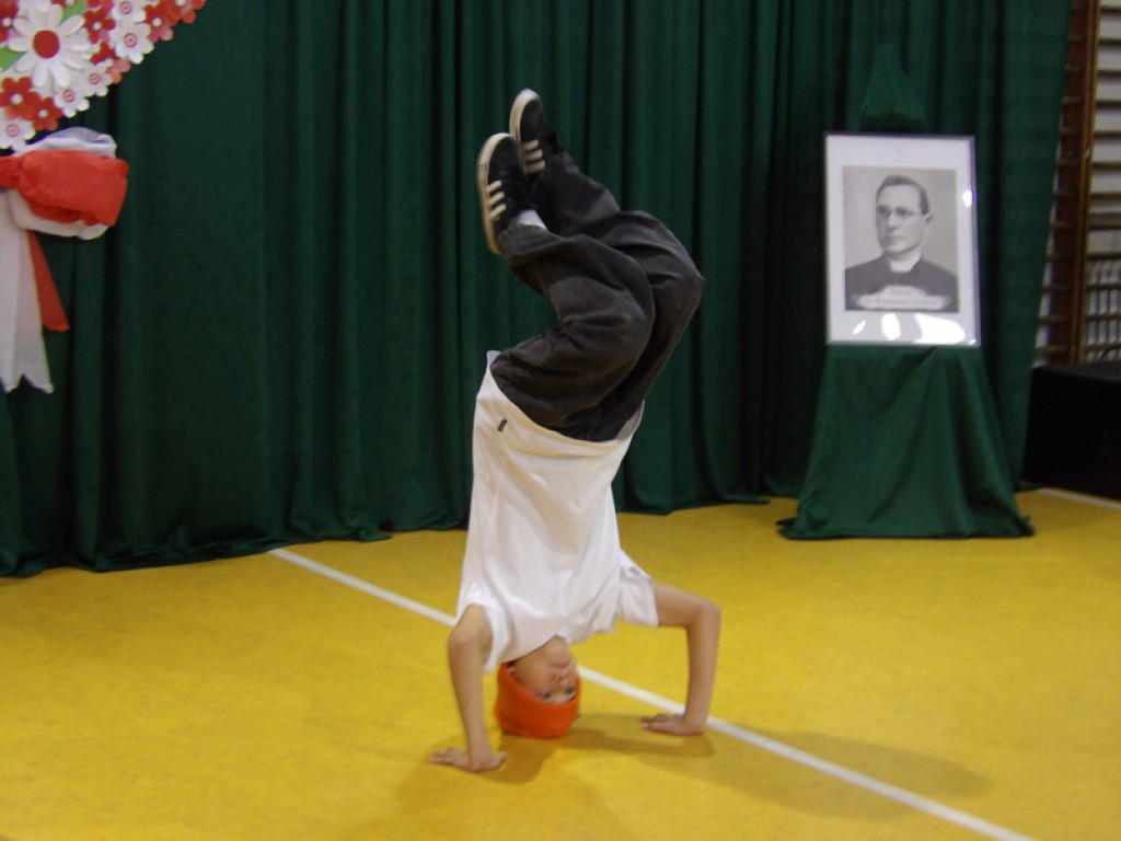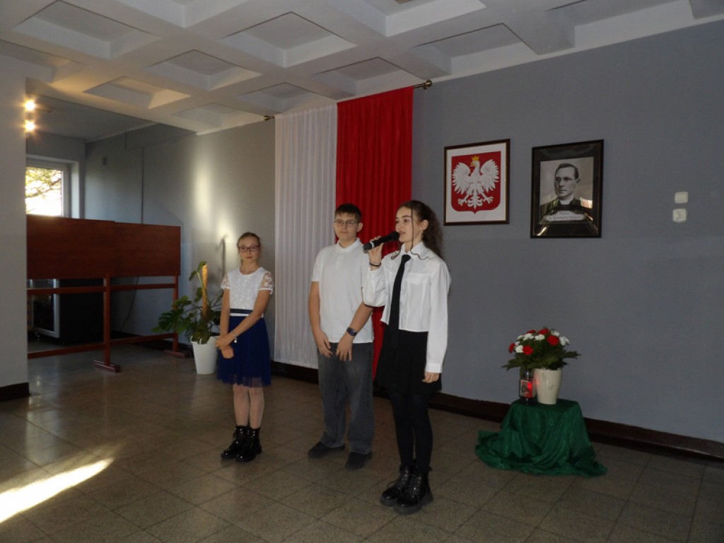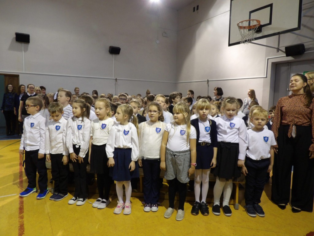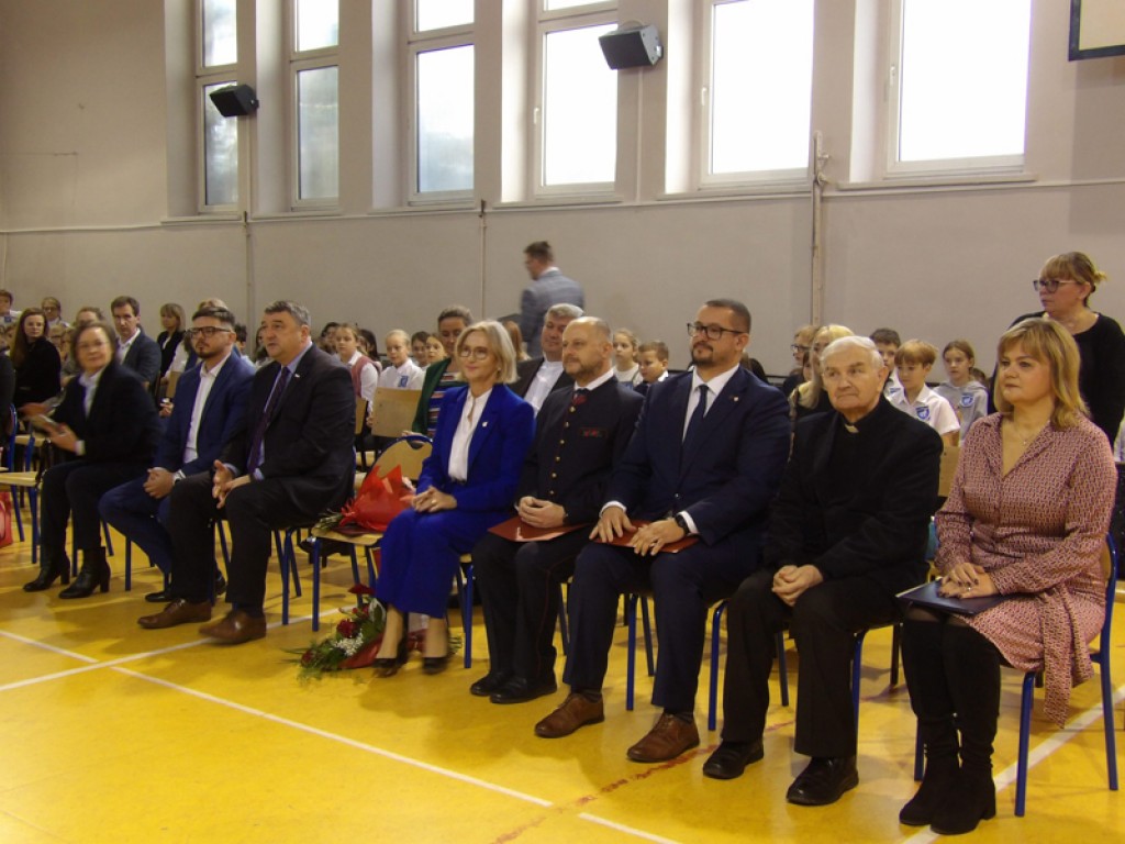 Obchody rozpoczęły się od złożenia kwiatów i zapalenia zniczy pod tablicą upamiętniającą patrona. Słowa „Cześć jego pamięci” wybrzmiały jako symboliczny hołd dla człowieka, który całe życie poświęcił wierze, nauce i służbie Śląskowi. Po tym upamiętnieniu ks. Konstantego Damrota uczestnicy zostali zaproszeni do sali gimnastycznej, gdzie odbyła się dalsza część obchodów – radosna, ale też pełna refleksji.