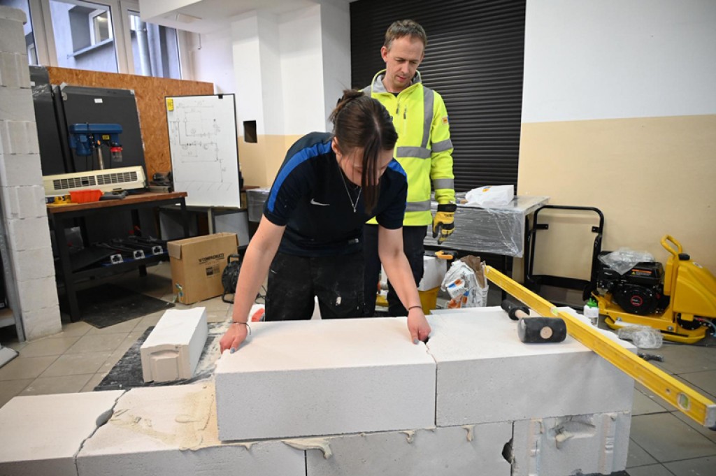 W części praktycznej młodzież samodzielnie wykonywała prace murarskie, pracując na bloczkach Ytong oraz elementach z linii Ytong Acura. Pod okiem instruktora ćwiczyli prawidłową technikę murowania, poziomowanie, stosowanie zapraw cienkowarstwowych i kontrolę jakości wykonywanych elementów. Możliwość pracy z profesjonalnymi materiałami i narzędziami była dla uczniów cennym doświadczeniem, które realnie przygotowuje ich do przyszłej pracy zawodowej.