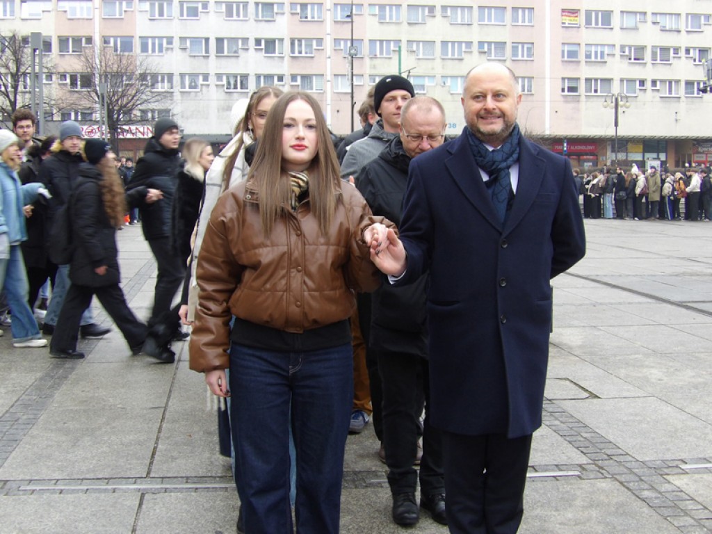 28 stycznia w samo południe Plac Jana Pawła II w Nowym Bytomiu zamienił się w wielką, taneczną scenę. Tegoroczni maturzyści z niemal wszystkich rudzkich szkół ponadpodstawowych spotkali się tam, by wspólnie zatańczyć poloneza – to tradycja, która od lat stanowi jeden z wyczekiwanych momentów miejskiego kalendarza. Jak co roku taniec poprowadził prezydent miasta Michał Pierończyk, poprzedzając pierwszy krok symbolicznym zdaniem: „Poloneza czas zacząć!”.
