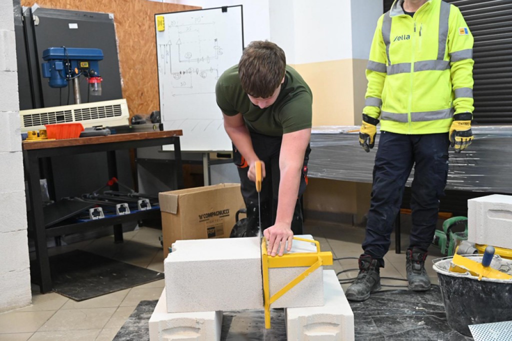 W części praktycznej młodzież samodzielnie wykonywała prace murarskie, pracując na bloczkach Ytong oraz elementach z linii Ytong Acura. Pod okiem instruktora ćwiczyli prawidłową technikę murowania, poziomowanie, stosowanie zapraw cienkowarstwowych i kontrolę jakości wykonywanych elementów. Możliwość pracy z profesjonalnymi materiałami i narzędziami była dla uczniów cennym doświadczeniem, które realnie przygotowuje ich do przyszłej pracy zawodowej.