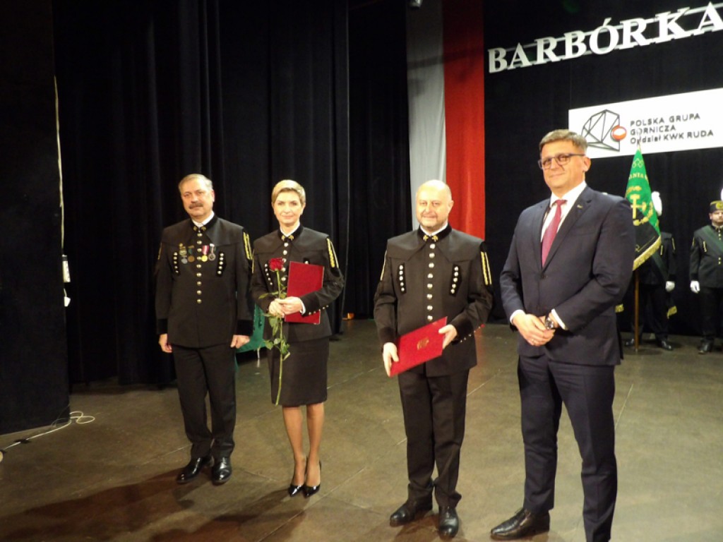 Centralnym punktem akademii było uhonorowanie pracowników, którzy w sposób szczególny zasłużyli się dla kopalni i polskiego górnictwa. Na wniosek dyrekcji kopalni oraz zarządu Polskiej Grupy Górniczej Minister Energii przyznał odznaki „Zasłużony dla górnictwa Rzeczypospolitej Polskiej”, które wręczyli wiceprezes PGG Bartosz Kępa oraz dyrektor KWK Ruda Jacek Kowalczuk. Nadano również Honorowe Stopnie Dyrektorskie – tytuł Generalnego Honorowego Dyrektora Górniczego otrzymali prezydent Rudy Śląskiej Michał Pierończyk oraz wiceprezydent Anna Krzysteczko. – Państwa codzienna służba pełna odwagi, odpowiedzialności i oddania, jest fundamentem nie tylko naszej lokalnej gospodarki, ale także naszej tradycji i tożsamości. Dziękuję wszystkim pracownikom kopalni za zaangażowanie, za podejmowanie każdego dnia trudnych i niebezpiecznych obowiązków oraz za pielęgnowanie ponad stuletniej górniczej spuścizny. Niech święta Barbara otacza Was swoją opieką i prowadzi bezpiecznie podczas każdej szychty, zapewniając tyle samo powrotów, ile zjazdów pod ziemię. Chcę podkreślić, że jako samorząd jesteśmy dla mieszkańców, ale jesteśmy też dla Was – górników. Zawsze możecie liczyć na nasze wsparcie – podkreślił prezydent Michał Pierończyk.