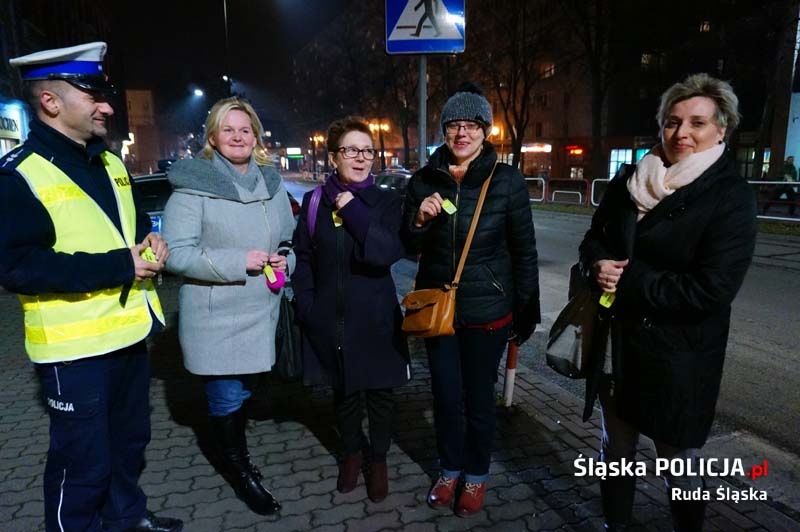 Policjanci z Rudy Śląskiej przeprowadzili akcję, podczas której rozdawali pieszym odblaski. Tymi działaniami promowali bezpieczeństwo pieszych, szczególnie po zmroku. Od sierpnia ubiegłego roku każdy pieszy, który po zmroku porusza się na drodze poza obszarem zabudowanym, musi mieć odblask umieszczony w sposób widoczny dla kierujących. Za brak elementu odblaskowego grozi mandat.