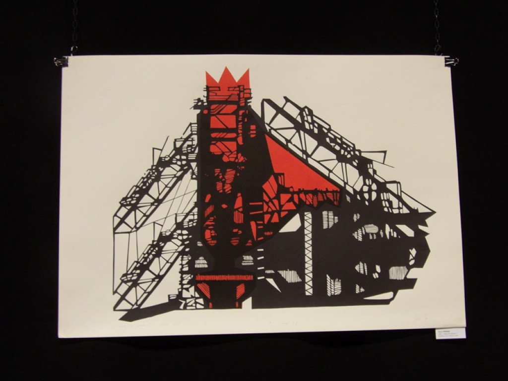 Obrazy Beaty Ferenc wyrastają z osobistych wspomnień i rodzinnych doświadczeń związanych z pracą w kopalni. Artystka sięga po intensywną czerwień jako symbol trudu, krwi i cierpienia. Industrialne formy – huty, szyby, konstrukcje kopalniane – ukazuje jako monumentalne, przytłaczające, budzące respekt i grozę.