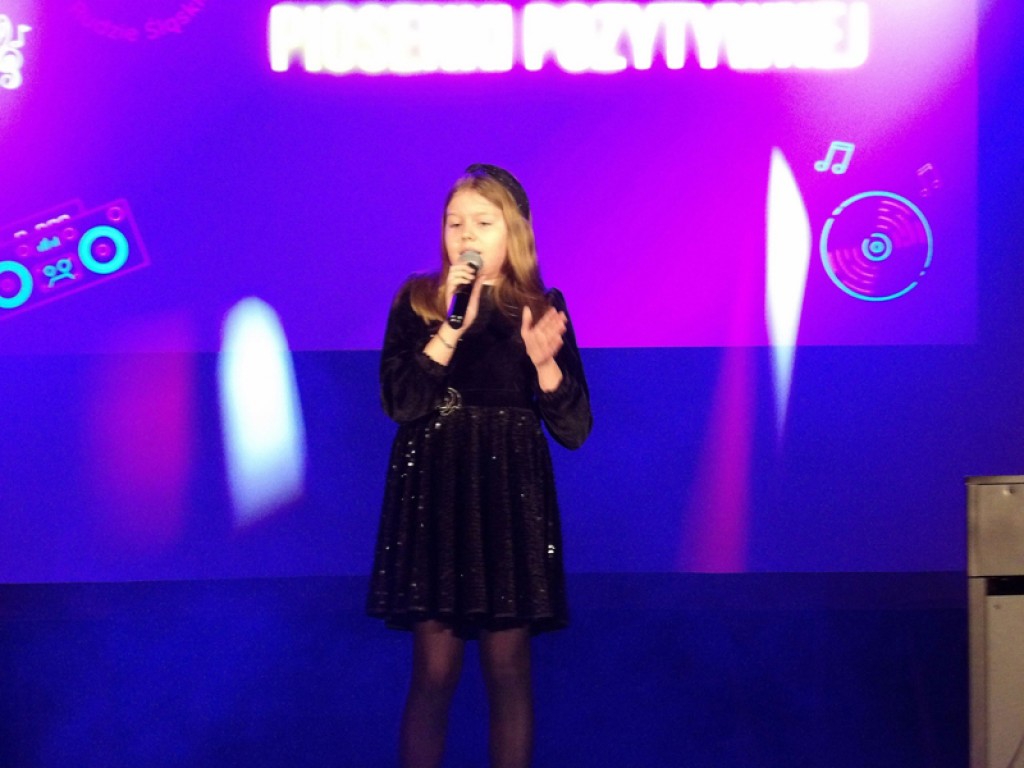 Na scenie pojawili się zdobywcy pierwszych miejsc konkursu – dzieci i młodzież, które nie tylko śpiewały, ale też opowiadały swoimi interpretacjami pozytywne historie. Ich wykonania były pełne emocji, autentyczności i scenicznej świadomości. Każdy utwór stawał się małym spektaklem: z wyrazistym gestem, spojrzeniem, ruchem, który dopełniał brzmienie słów. Mali i młodzi artyści nie odtwarzali piosenek – oni je przeżywali.
