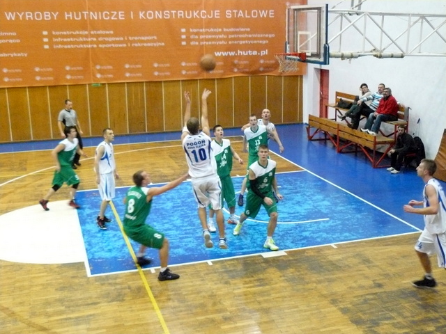 Dobrze rozpoczęli spotkanie koszykarze Pogoni. W pierwszej kwarcie kilka celnych rzutów zaliczyli: Przemek Tomecki, Adam Wilkin i Patryk Jeleń. Równie dobrze było także w drugiej kwarcie. Punktowali Adam Wilkin, Paweł Mol, Mateusz Bobrowski i Przemysław Tomecki. Ten ostatni oraz Mateusz Ogrodnik zaliczyli po dwie zbiórki w obronie, zaś Paweł Mol miał dwie asysty. Na przerwę koszykarze Pogoni schodzili prowadząc różnicą 20 punktów (51:35).