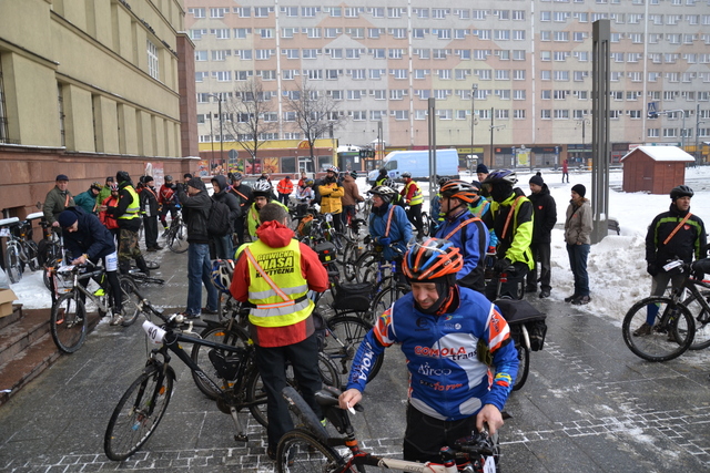 – Zeszłoroczna Śląska Świąteczna Masa Krytyczna była zdecydowanie mniej atrakcyjna, głównie dlatego, że nie było śniegu. Dzisiaj to czerwone serce Wielkiej Orkiestry Świątecznej Pomocy ładnie kontrastuje z jego bielą. Myślę, że wszyscy Ci, którzy dzisiaj biorą udział w masie są jeszcze większymi bohaterami i niosą ciut większą pomoc niż zeszłoroczni uczestnicy, bo warunki są o wiele trudniejsze. Trzeba mieć odwagę, by zdecydować się na przejechanie trasy przy takiej pogodzie – mówił Zbigniew Domżalski